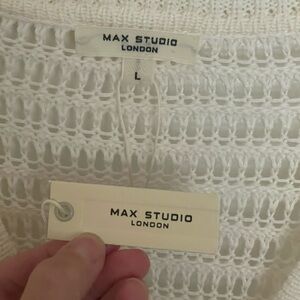 NEW Max Studio V-Neck Knit Polo Sweater in Off White Ivory Loose Knit Oversize L