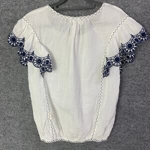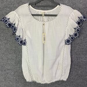 NEW Max Studio Women's Flutter Sleeve Bubble Hem Blouse Size XS White