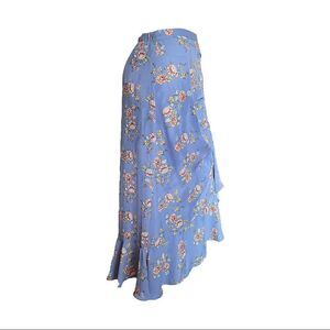 NEW Max Studio Bubble Crepe Side Cinched Skirt Blue Floral Ruffle Wrap Women M
