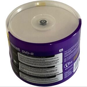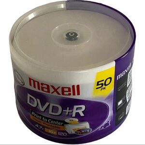 Maxell 50-Pack DVD-R 4.7GB 16x Blank Media 120 min Inkjet Printable. These DVD+Rs are new sealed.