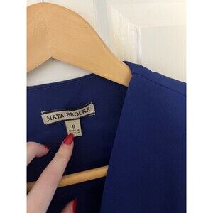 The Maya Brooke Cover Up Navy Shrug in women's size 8 is a stylish addition to any wardrobe. This short-sleeve shrug features a solid blue color and a regular fit, perfect for layering over any outfit. The brand Maya offers a quality product without the vintage feel, making it a versatile and trendy option for women looking to personalize their style. With its classic design and cover-up style, this shrug is a must-have for any fashion-forward individual.