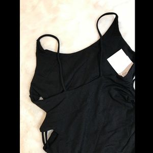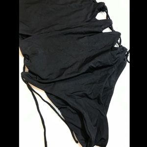 - Scoop neck - Spaghetti straps - Cutout sides with lace-up closure - Moderate seat coverage - Fully lined - Imported