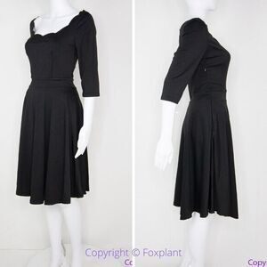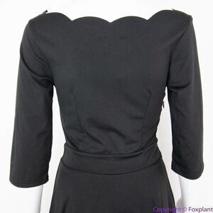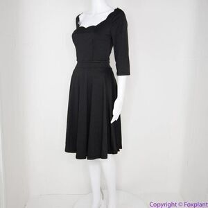 NEW Meaneor black fit and flare midi dress scoop scallop neckline, S