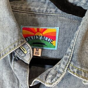 NEW Medium Daily Blue AG Goldschmidt Designer Blue Jean Denim Long Sleeve Button