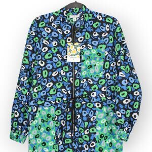 long sleeve jumpsuit - zipper front - raglan sleeves - drawstring cinch tie at waist - jazz dot green pattern - contrast chest & side POCKETS - ankle length - elastic cuffs & leg openings - 251018346 F16740028 04/23