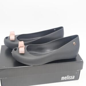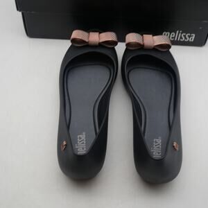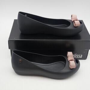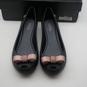 NEW Melissa Women's Ultragirl Chrome Tie Ballet Flats Women's Size 5 Black Rose
