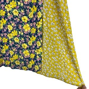 NEW Melloday Faux Wrap Mixed Floral Print Maxi Skirt Small Yellow Blue Tie Back