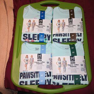 NEW Member's Mark Girls 4 Piece Organic Cotton Pajama Set Dogs & Cats