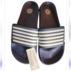 NEW Men's Akademiks Striped Logo Navy Blue Slides Slippers size 11 (44)