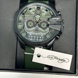 NEW Mens Army Green Silicone Band Ed Hardy Watch