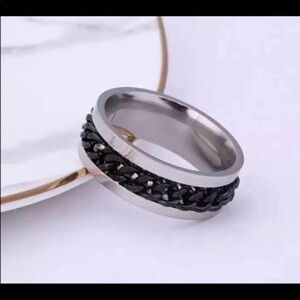 NEW Men’s Black Chain Spinner Ring Silver Stainless Steel Jewelry 8mm Wide