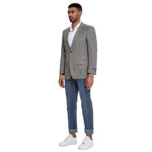 NEW Mens Blazer Jacket Tanned Gray Glen Check by ZeGarie