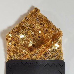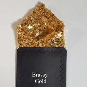 NEW - Men's Brassy Gold Sequin Pre-Folded Pocket Square Insert - Point Design