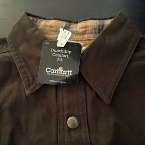 NEW Mens Carhartt Heavy Duty Brown Lined Canvas Button Shirt