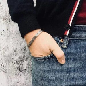 NEW Men’s Double Rope Chain Bracelet Stainless Sterling 9” Punk Silver Bracelet