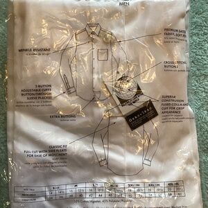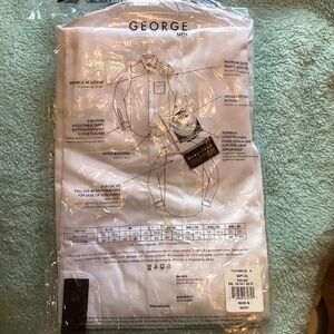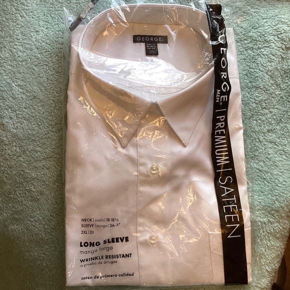 Men's George Premium Sateen Long Sleeve Cotton Blend Dress Shirt ~WHITE 2XL Made of a soft cotton blend with a handsome sateen fabrication, this shirt has a classic fit and a full-button front closure for a variety of wearing options. The long sleeves have button cuffs, while a collar, a chest pocket and a shirttail hem complete the shirt. 55% cotton, 45% polyester Dress shirt Sateen fabrication. Packaging does show some wear.