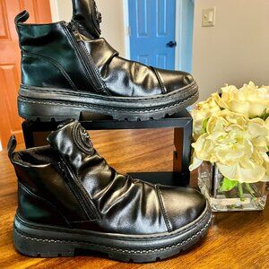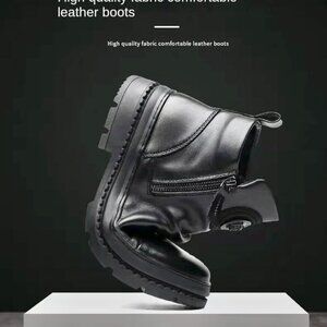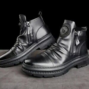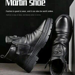 Introducing the new men's luxury leather high top zip ankle motorcycle retro Martin boots. These stylish boots are designed for men who appreciate quality and retro fashion. Made with soft black leather upper material and featuring a biker style, these boots are perfect for those who love the rugged yet stylish look of motorcycle boots. With a size 43 (10) fit and a durable polymer outsole, these boots are both fashionable and practical for everyday wear. Step up your shoe game with these stylish and versatile boots.