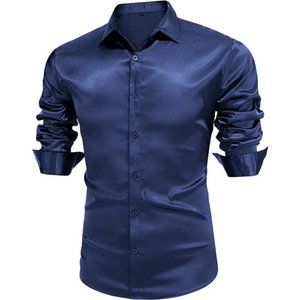 -PREMIUM FABRIC - 92% Polyester & 8% Spandex. This satin dress shirts for men is made of high-quality smooth silk-like satin fabric that is super soft, lightweight and breathable. The high quality smooth fabric gives you a soft and comfortable wearing experience. Stretchable fabric provides maximum comfort and flexibility when moving.