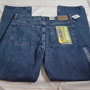 These brand new Old Navy jean are a size 35 x 34 with a classic fit. They are slim though the thighs and then slightly tapered. These are a classic original fit. New with tags attached.