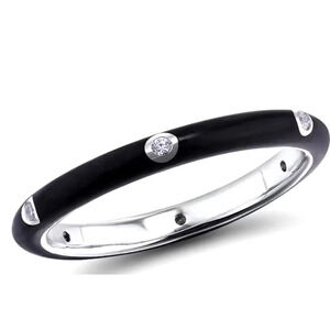 Elevate your jewelry game with our latest addition - the NEW Women's Pave Diamond Black Enamel Stackable Ring in Size 10. Made from high-quality 925 sterling silver, this ring features a stunning pave simulated diamond design and a sleek black enamel finish. Perfectly stackable with other rings or worn on its own, this ring is a versatile piece that will add a touch of elegance to any outfit.