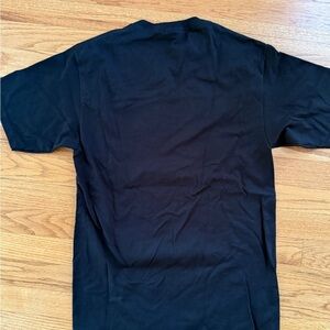 Stylish black t-shirt featuring a striking blue graphic design. Perfect for casual wear.