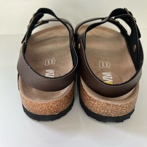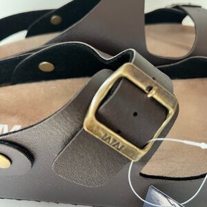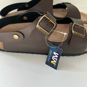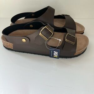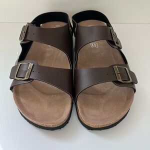 NEW Men's Size 12 Brown Leather Cork Footbed Sandals Slip on with Buckle Straps