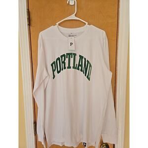NEW Men’s White/Green Portland Gear Oregon Long Sleeve Shirt XL Felt Letters