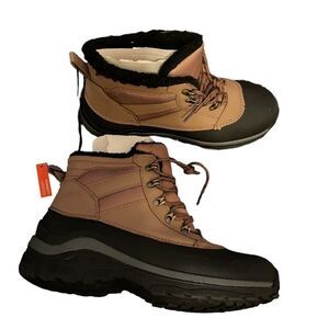All in Motion Waterproof Made for outdoor activities/winter wear faux fur lining lace-up Design Sleek waterproof fabric treaded outsole Mens Care and Cleaning: Apply Water Repellent Treatment Footwear Lining Material: Faux Fur Footwear Insole Material: EVA (Ethylene Vinyl Acetate) Features: Lace Up Footwear Upper Material: 68% Leather and 17% Polyurethane and 15% Polyester Footwear Outsole Material: 100% TPR (Thermoplastic Rubber) Boot Shaft Circumference: Approximately 12.0 Inches Boot Shaft Height: Approximately 5.0 Inches Medium Width