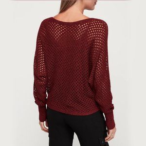 Open stitching gives this sweater unique style and a cool look. Perfect for layering up or down for all seasons. • Bateau neck • Long dolman sleeves • Open stitch design • Straight hem; Hits at waistband • Perfectly proportioned body and Sleeve lengths • Rayon/Cotton; Hand wash Condition: Brand New With Tags