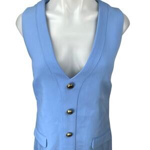 Meshki Florentina Blue Sleeveless Suiting Plunge V-Neck Button Down Mini Tank Dress Size XXS