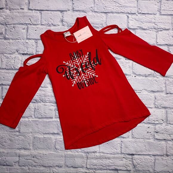 Size 3XL (please see measurements, is approx girls medium) Mia Belle Girls ‘Baby It’s Cold Outside’ Cold Shoulder Christmas Top. Adorable! New with Tags.