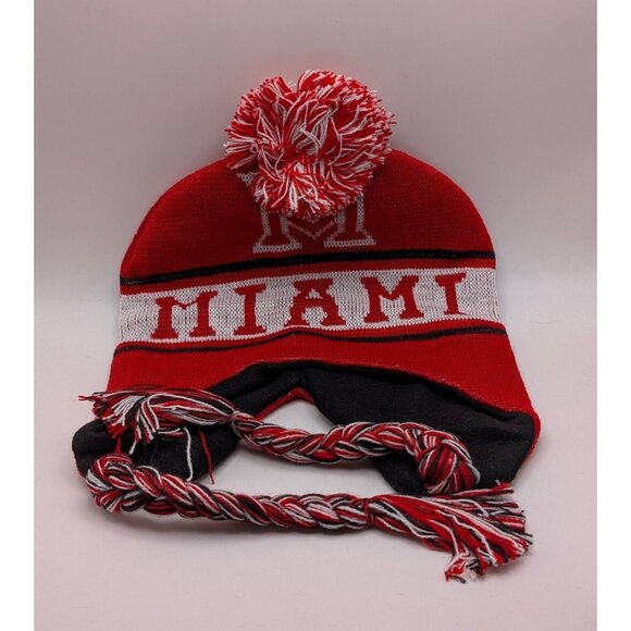 NEW Miami University Ohio Redhawks Winter Knit Beanie Hat Cincinnati Pom Pom