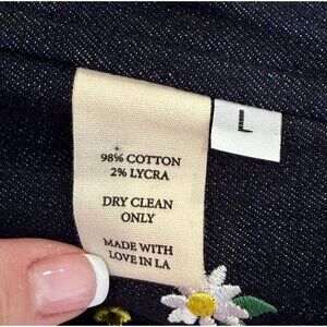 The Dylan is a bra top in dark indigo denim featuring an exposed zipper front and the season's custom daisy embroidery throughout, Slight underwire: Adjustable shoulder strap: Dry clean only: 98% cotton, 2% lycra: Made in USA