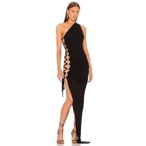NEW Michael Costello x REVOLVE Merrick Maxi Dress One Shoulder Black Size S