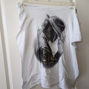 Unique MJ Cirque du Soleil tee with one short sleeve and sleeveless on other side. Super soft and very cute on.