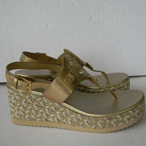 NEW Michael Kors Aubrey Cutout Leather Wedge Sandal Gold SANDAL SZ 8.5M
