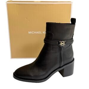 NEW Michael Kors Bombe Leather Mindy Black Heel Ankle Boot Women's 10M Bootie Shoe - NEW In Box, Box Shows Wear!