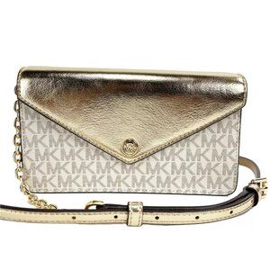 NEW Michael Kors Jet Set Gold Flap Clutch Crossbody Bag PVC Pale Gold Small NWT