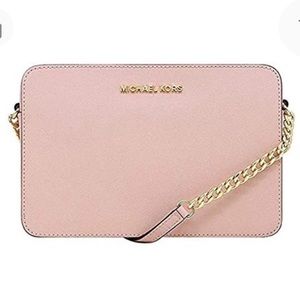 NWT Michael Kors Jet Set Leather Crossbody Purse Bag, Blush Pink. Gorgeous bag brand new with tags. Length is approx 9.5 inches. Height is approx 7 inches. Width is approx 2 inches. No flaws.