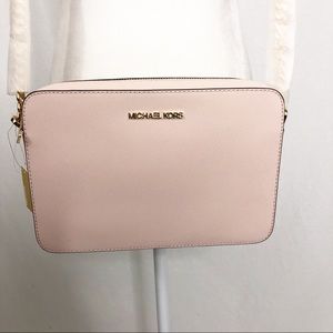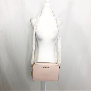 NEW Michael Kors Jet Set Large East West Leather Crossbody Purse Bag, Blush Pink