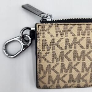 NEW Michael Kors MK Brown Monogram Logo Carabiner Zip Wallet & Round Bag Charm