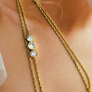 a rolo chain, circular logo pendant and adjustable lobster clasp closure.