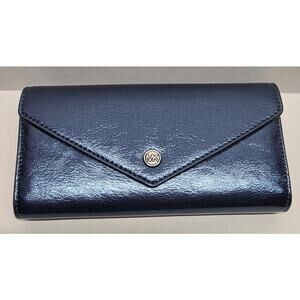NEW Michael Kors MK Patent Teal Blue Large Envelope Jet Set Continental Wallet