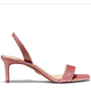 NEW Michael Kors Mila Pixie Pink Fine Glitter Open Toe Kitten Heel Sandal 7.5
