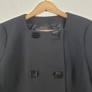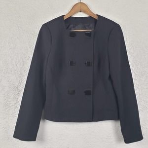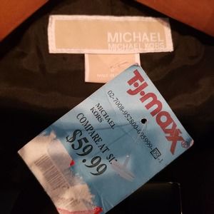 NEW! Michael Kors Military Cut Blazer Jacket - 6 in excellent new with tags condition. Black on black. Square statement buttons. Waist length, long sleeves. High crew neck. size 6 bust 36 lgth 24 slvs 24 office professional career work spring fall winter funeral