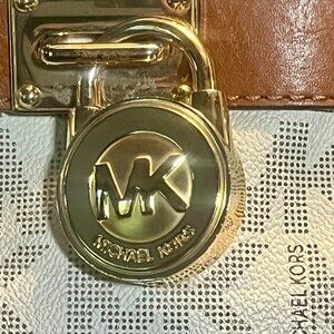 The new Michael Kors Nouveau Hamilton Signature Satchel Shoulder Bag is a stylish and versatile accessory for women. Made from a combination of luxurious leather and durable PVC, this shoulder bag features a brown leather handle/strap along with gold chain, beige lining, and a vanilla exterior color. The Michael Kors Hamilton product line adds a touch of sophistication to the overall design, making it a perfect choice for any outfit or occasion. With its classic yet contemporary style, this satchel shoulder bag is a must-have for any fashion-forward woman.