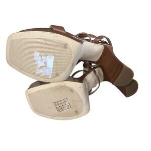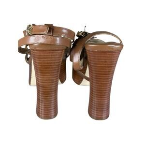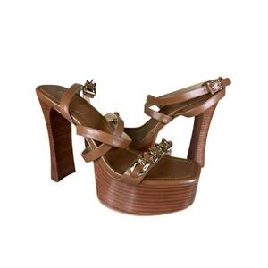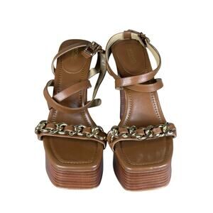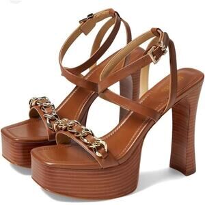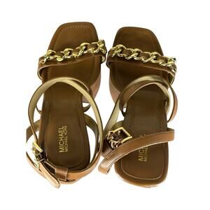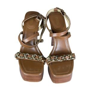 NEW Michael Kors Paola Chain Leather Platform Sandals Brown Gold Chain Size 9