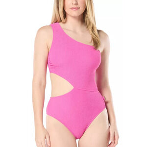 NEW Michael Kors Pink One Piece Swimsuit Size 12 Cut Out One Shoulder Ribbed NWT