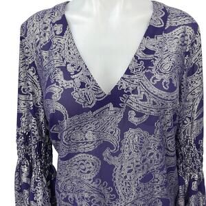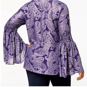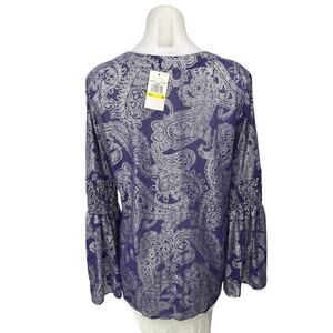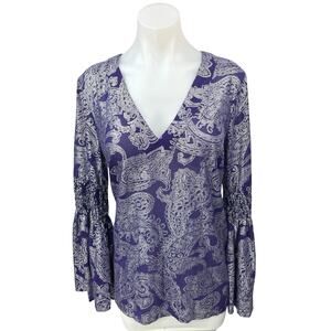 NEW Michael Kors Purple Silver Metallic Bell Sleeve Paisley Blouse Top Size M