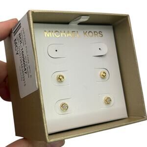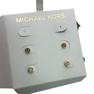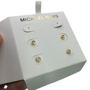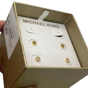 NEW Michael Kors Stud Earring Set Gold Mini Pave & Logo Round Set of 2